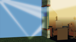 Der Lamellenbehang wird durch eine spezielle Technik in zwei Zonen geteilt. Im oberen Teil werden die Lamellen waagrecht bis leicht geneigt positioniert, im unteren Teil nahezu geschlossen. So ergibt sich eine blendfreie Zone im Arbeitsbereich.